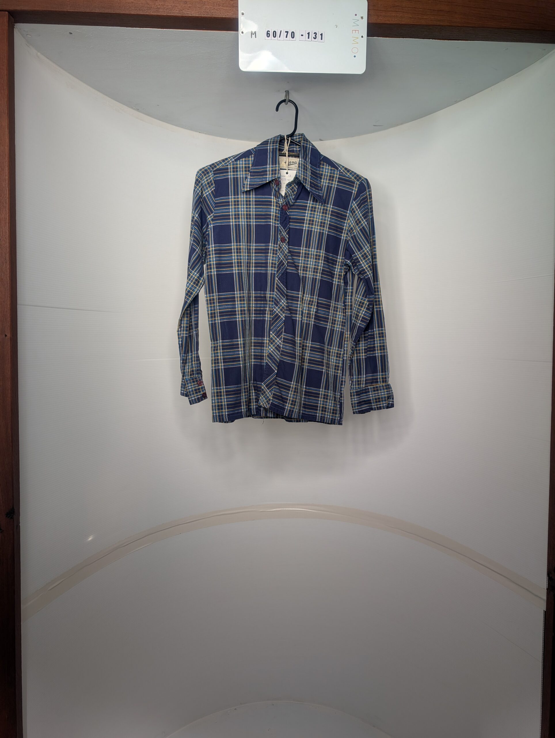 Vintage 1970s Plaid Button-Down Shirt, Navy Blue