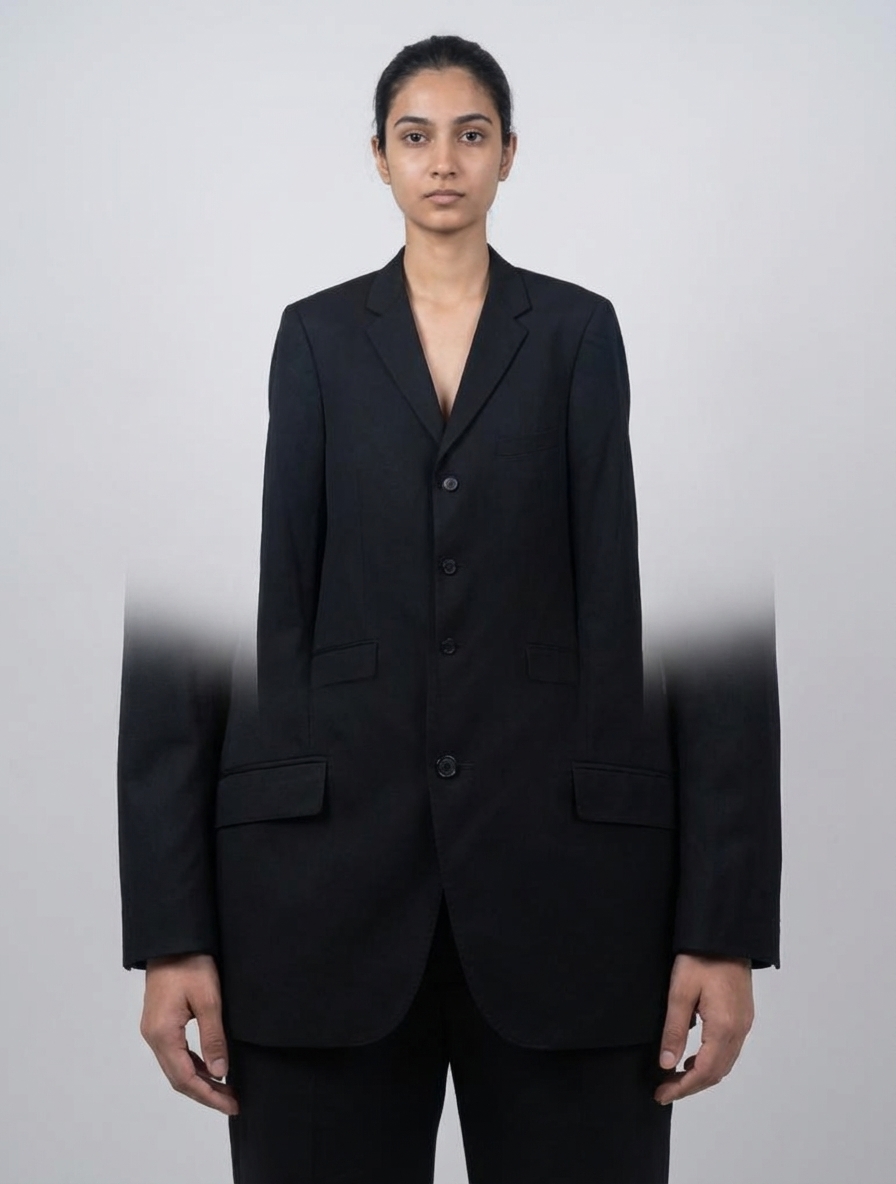 Colors: black | Pattern: solid | Era Style: modern, likely 2000s | Cut: tailored, fit