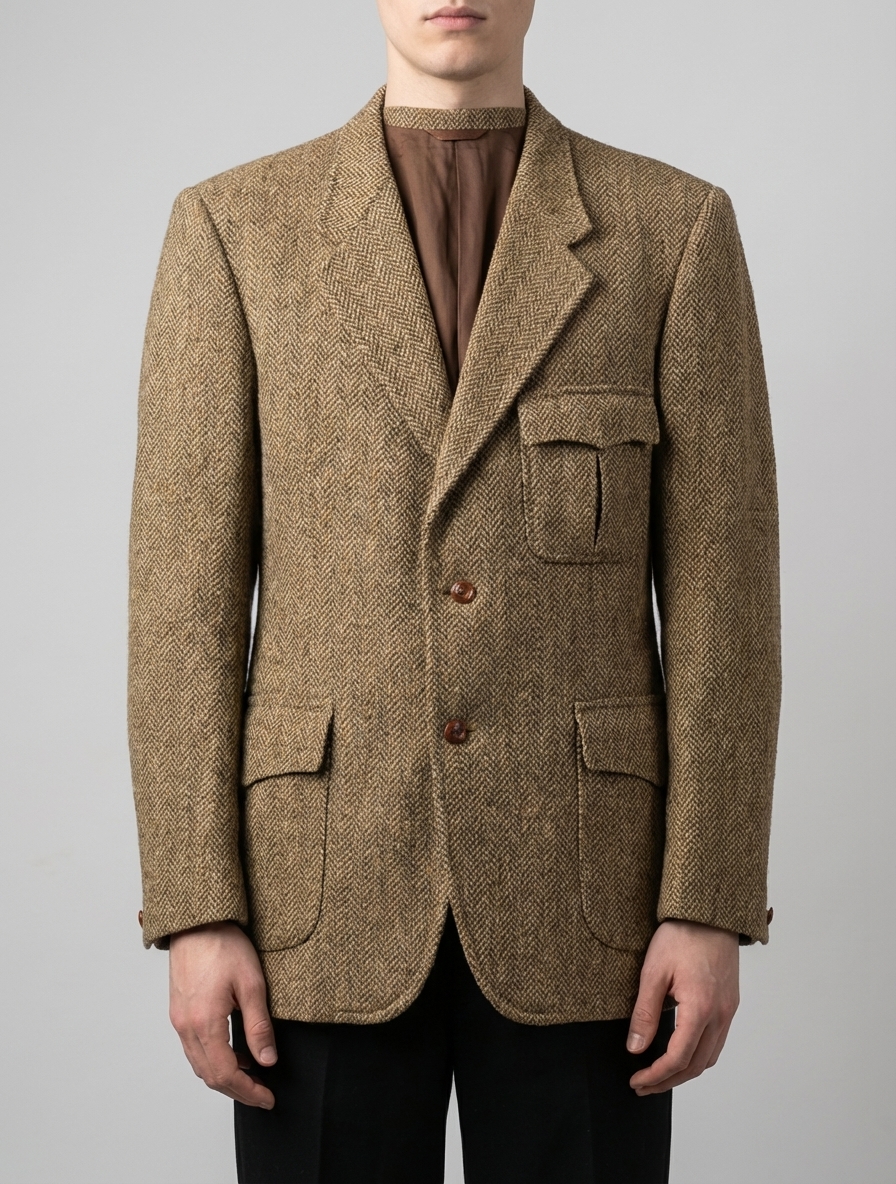 Colors: brown, tan | Pattern: herringbone | Era Style: 1950s, vintage style | Cut: classic fit, structured