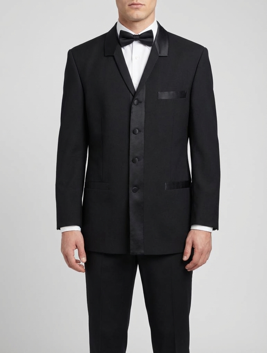 This vintage 1980s black blazer features elegant satin lapels and a tailored fit, perfect for formal occasions. Its classic design and smooth fabric make it a timeless addition to any wardrobe.