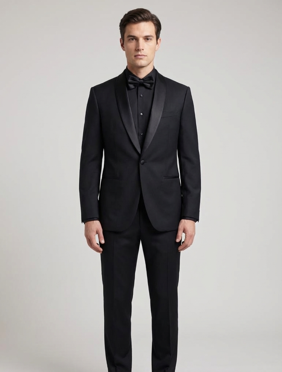 Classic tuxedo jacket with a satin shawl lapel. Perfect for formal events or adding a touch of vintage style to your wardrobe.
