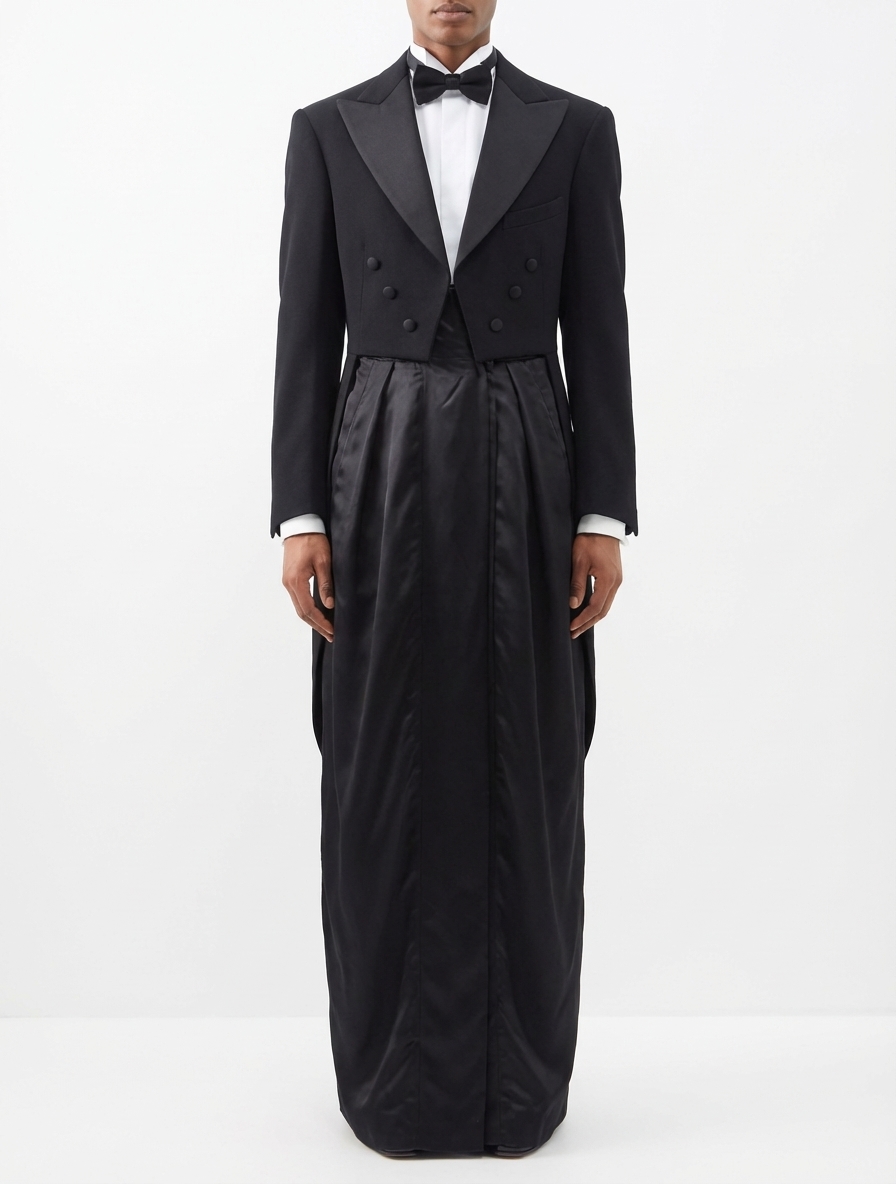 Elegant vintage black wool tailcoat, perfect for formal occasions. Features a double-breasted design and classic silhouette.