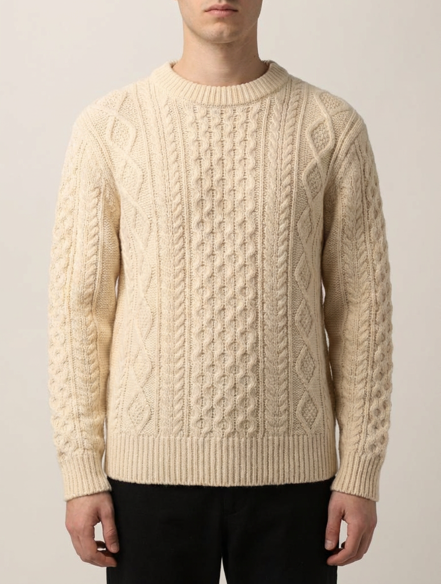 Colors: cream, white | Pattern: cable, knit, pattern | Era Style: 1980s, casual knitwear | Cut: relaxed fit, slightly cropped