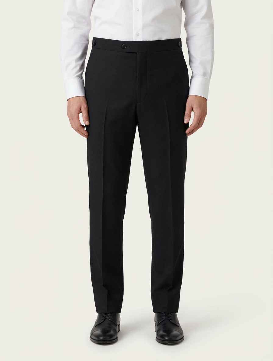Colors: black | Pattern: solid | Era Style: 1980s, classic style | Cut: straight leg, tailored fit