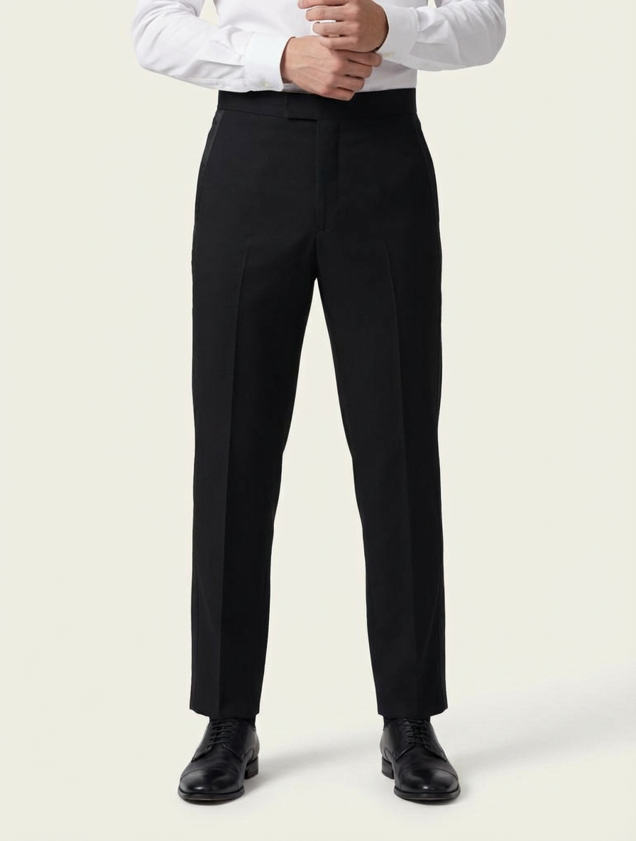 Colors: black | Pattern: Solid | Era Style: 1920s-1930s, possibly military or formal wear | Cut: Straight leg, high-waisted