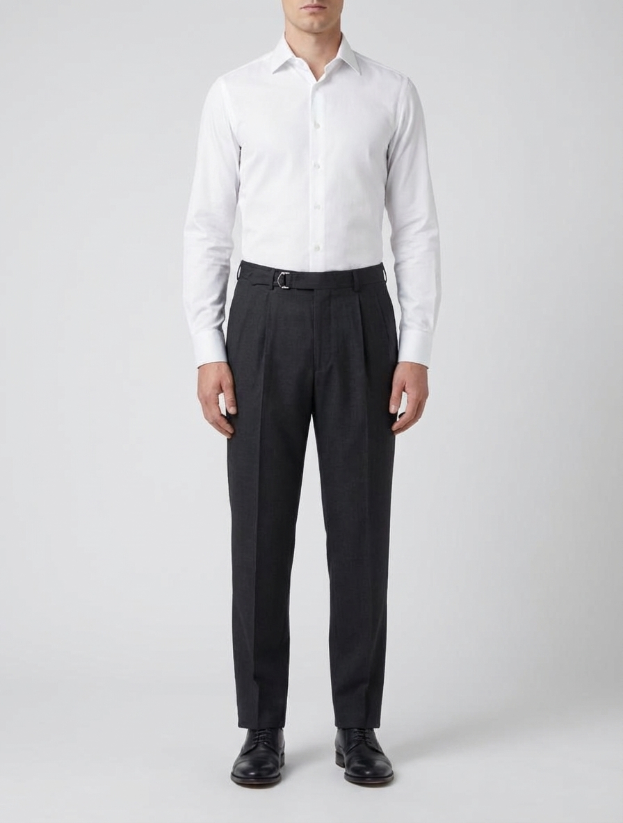 - Belted waist with buckle detail