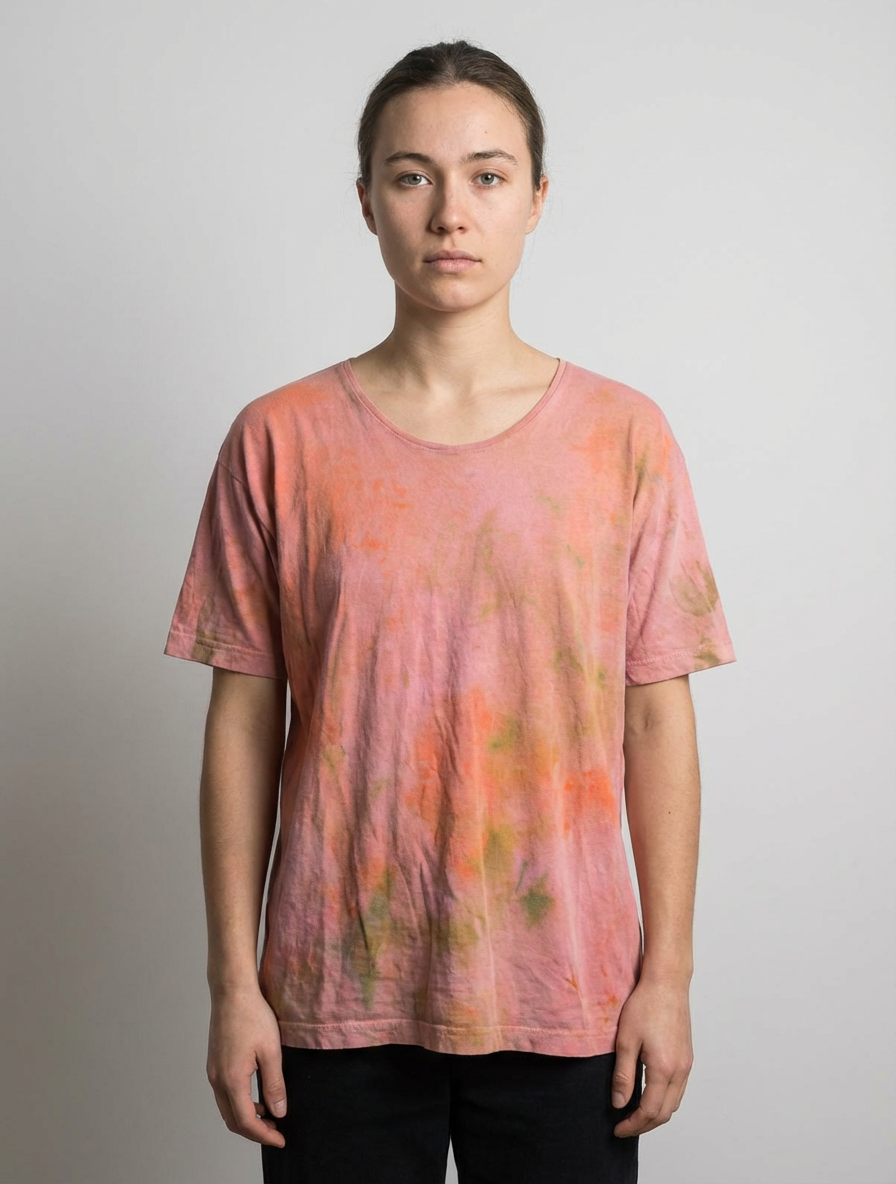 Colors: pink, orange | Pattern: tie-dye, effect | Era Style: 1990s, casual style | Cut: loose fit, relaxed silhouette