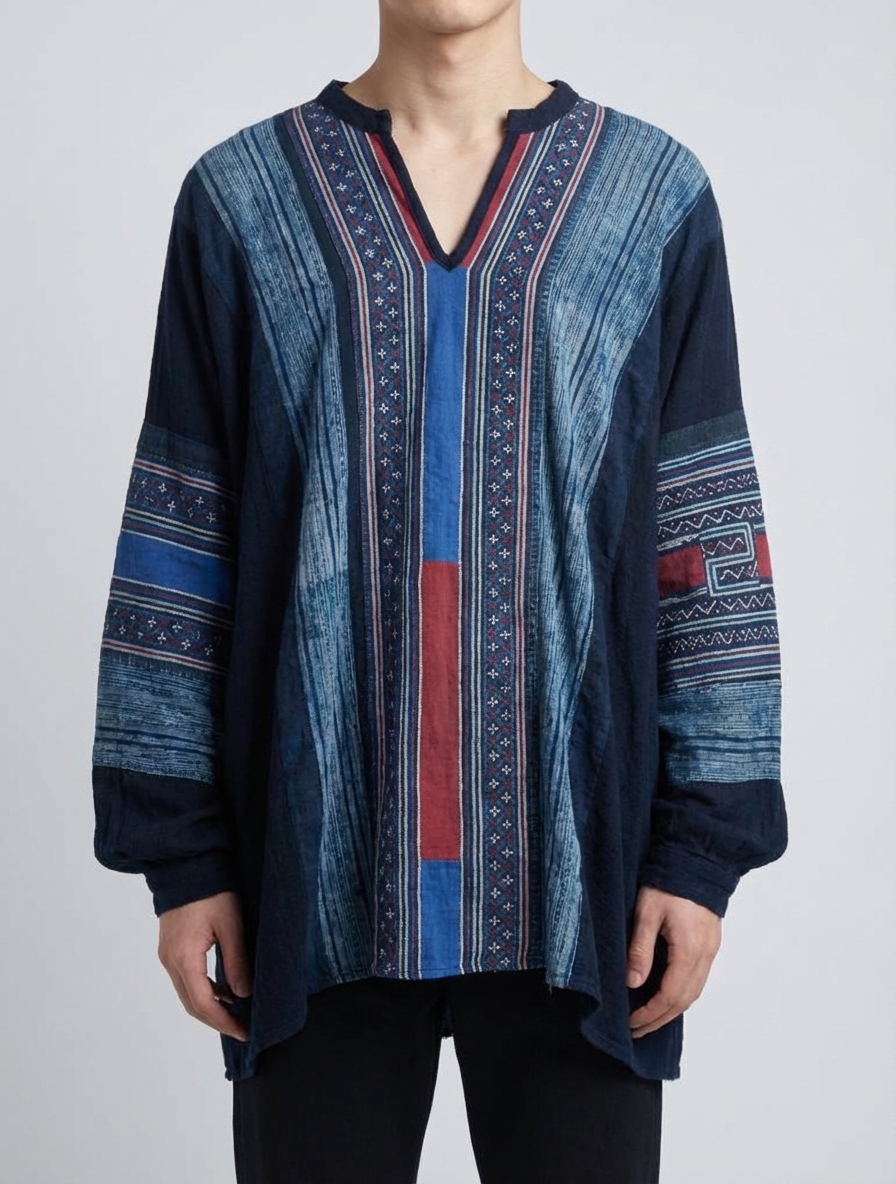 Ethnic Inspired Patchwork Tunic Top, Asymmetrical Hem