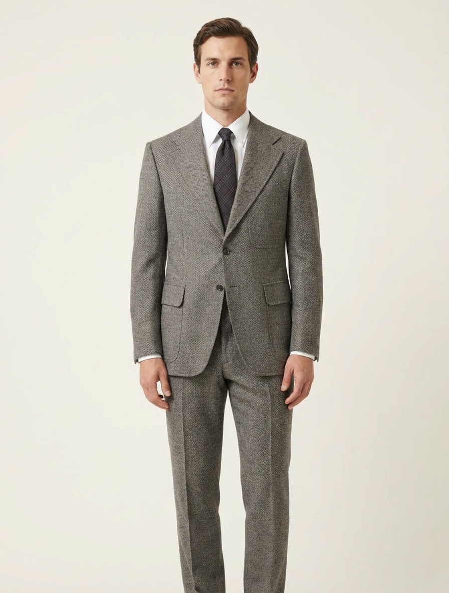 Colors: gray, brown | Pattern: Herringbone | Era Style: 1980s-1990s, classic style | Cut: Tailored, slightly boxy fit