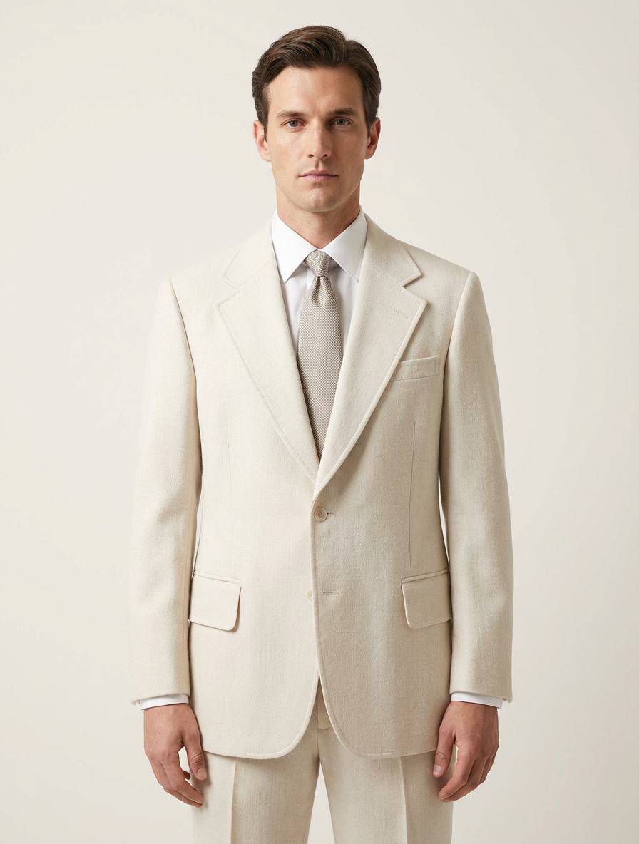 This vintage 1980s light beige blazer offers a classic tailored look perfect for both casual and formal occasions. Its structured fit and notched lapels make it a versatile addition to any wardrobe.
